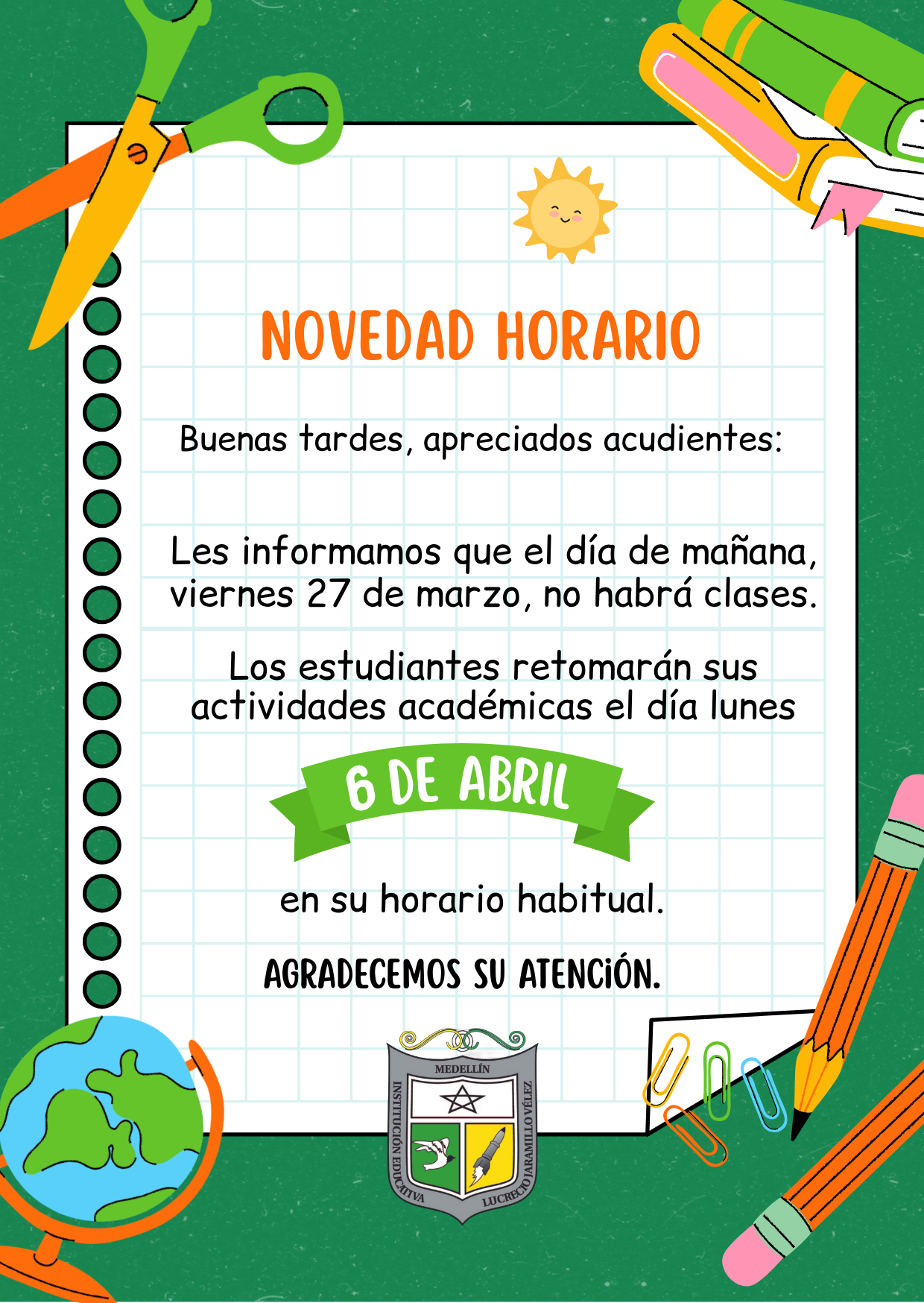 Informamos a toda la comunidad educativa que el día viernes 27 de marzo, la Secretaría de la institución en la sede principal prestará atención únicamente en el horario de 7:00 a.m. a 10:00 a.m.