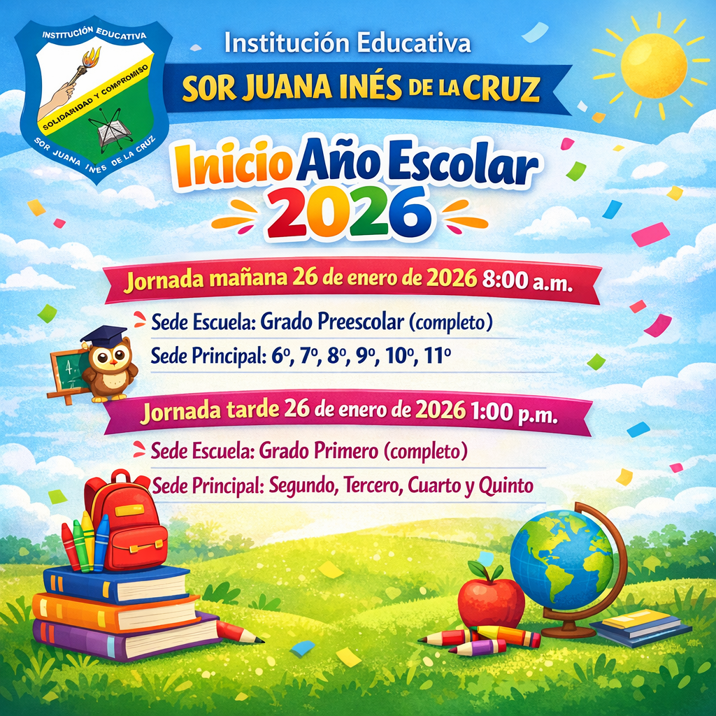 La Institución Educativa Sor Juana Inés de la Cruz informa a todos los padres de familia y acudientes que ya se encuentra disponible la Circular 001 de enero de 2026, donde se presentan las orientaciones generales para el inicio del año escolar, reuniones, lineamientos de convivencia, fechas académicas y demás información institucional relevante.