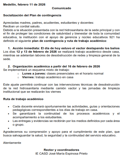 NOVEDADES EN EL HORARIO DEL DIA JUEVES 12 DE MARZO DE 2026