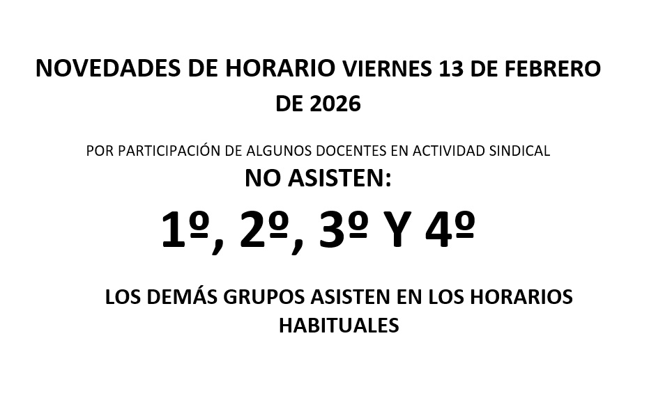 NOVEDADES DE HORARIO JUEVES 30 DE ENERO DE 2025